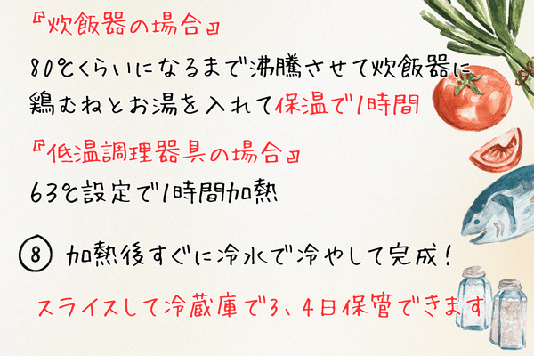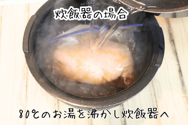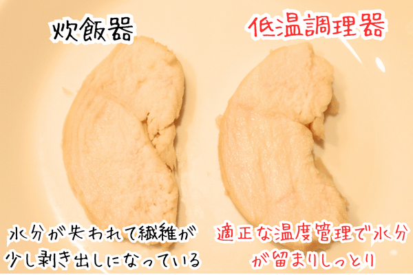 炊飯器でも美味しくできるのですが、低温調理器ではよりしっとりできます。