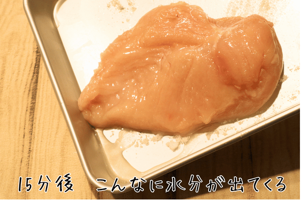 ①鶏むね肉を砂糖で保湿性を高める